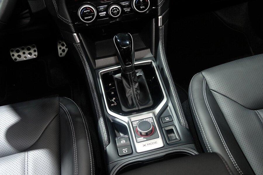 Forester 2024 sử dụng vô lăng 3 chấu bọc da tích hợp nhiều nút bấm tiện lợi, có thể điều chỉnh 4 hướng, đặc biệt còn có 2 lẫy chuyển số mang đến trải nghiệm lái thú vị. Khu vực cần số trông khá gọn gàng nhờ sử dụng phanh tay điện tử.